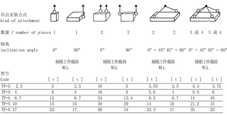 ▲TP-S型JDT旋轉(zhuǎn)吊點(diǎn)在所有受力方向下均有4倍安全系數(shù)